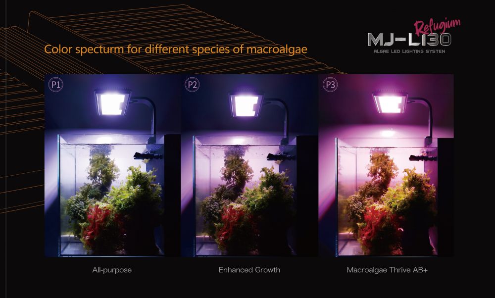 The refugium edition offers specialized color spectrum for different species of macroalgae